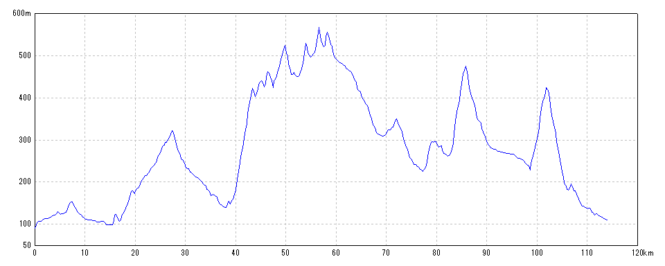 | 水平距離 | 114.18km | 沿面距離 | 114.40km |