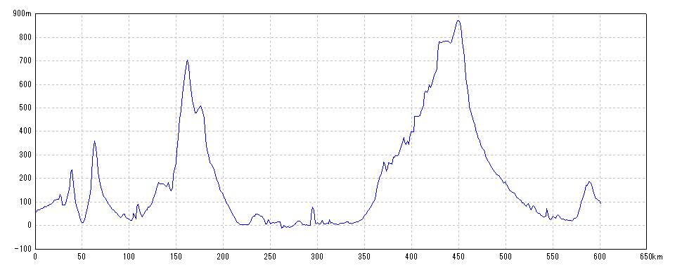 | 水平距離 | 601.43km | 沿面距離 | 601.96km |