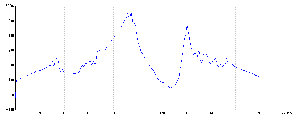| 水平距離 | 201.82km | 沿面距離 | 202.05km |